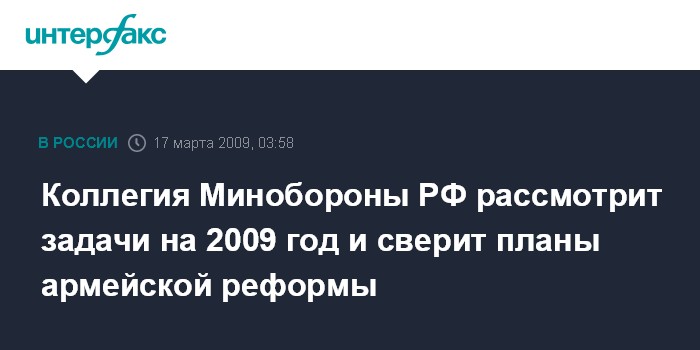 Коллегия Минобороны РФ рассмотрит задачи на 2009 год и сверит планы армейской реформы
