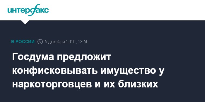 Москва. 5 декабря. INTERFAX.RU - В комитете Госдумы по безопасности и противодействию коррупции разрабатывают законопроект об изъятии в пользу государства легализованному от торговли наркотиков имуществу осужденных дилеров.