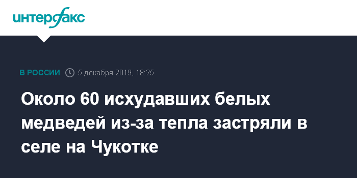 "Одной из причин сложившейся ситуации могли стать глобальные изменения климата. В районе Мыса Кожевникова наблюдается необычайно теплая для начала декабря погода, из-за чего лед у берега хоть и появился, но все еще недостаточно прочный. Жители села ждут, когда ударят морозы и по окрепшему льду медведи покинут окрестности села", - добавили в сообщении.