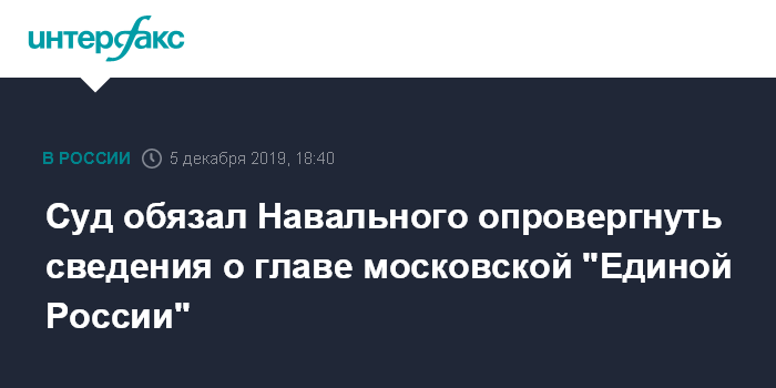 Суд обязал Навального опровергнуть сведения о главе московской "Единой России"