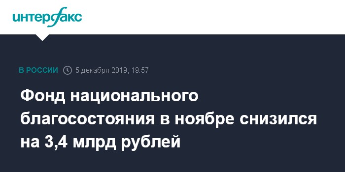 Фонд национального благосостояния в ноябре снизился на 3,4 млрд рублей