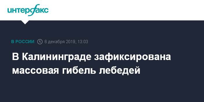 Москва. 6 декабря. INTERFAX.RU - В Калининграде на озерах Верхнее и Лесное произошло массовое отравление лебедей.