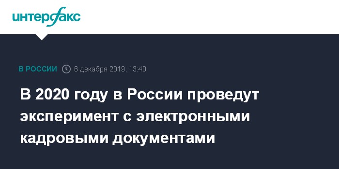 В 2020 году в России проведут эксперимент с электронными кадровыми документами