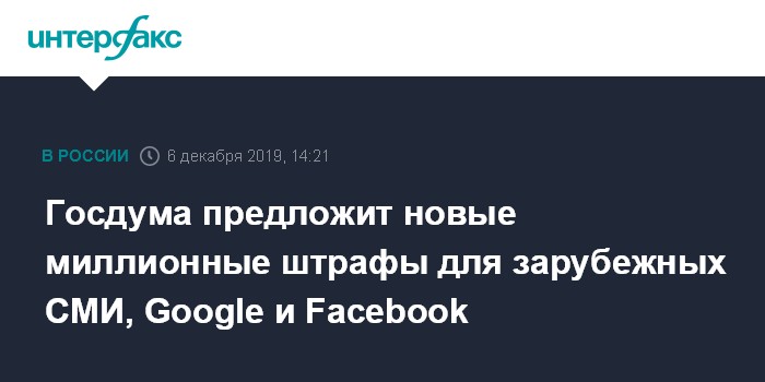Госдума предложит новые миллионные штрафы для зарубежных СМИ, Google и Facebook