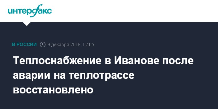 Москва. 9 декабря. INTERFAX.RU - В Иванове завершены работы по восстановлению теплоснабжения жилых домов и социальных объектов, ранее нарушенного из-за аварии на теплотрассе, сообщила в понедельник пресс-служба Главного управления МЧС по региону.