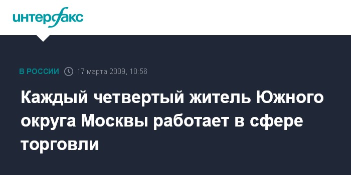 Каждый четвертый житель Южного округа Москвы работает в сфере торговли