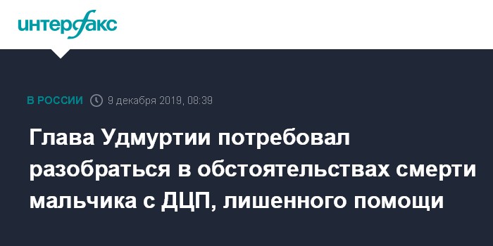 Глава Удмуртии потребовал разобраться в обстоятельствах смерти мальчика с ДЦП, лишенного помощи