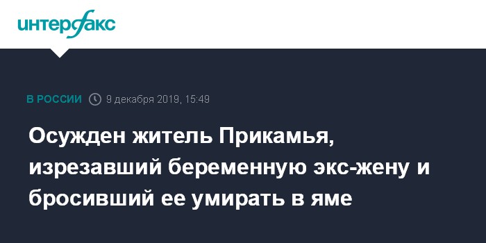 Москва. 9 декабря. INTERFAX.RU - Суд в Пермском крае приговорил жителя Кунгура к 11 годам колонии строгого режима за попытку убить свою беременную экс-сожительницу, сообщается в понедельник на сайте регионального управления СКР.