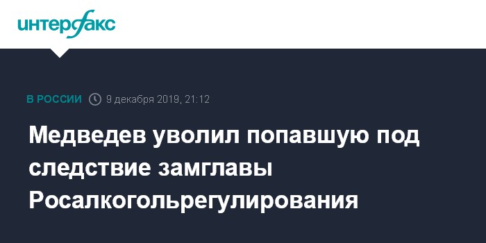 Медведев уволил попавшую под следствие замглавы Росалкогольрегулирования