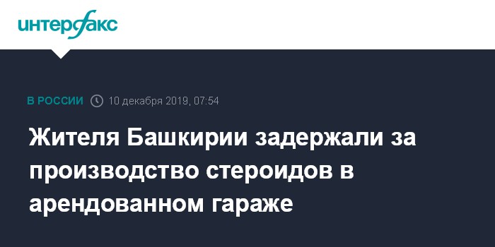 Москва. 10 декабря. INTERFAX.RU - Полицейские задержали жителя башкирского города Ишимбай, создавшего лабораторию для производства анаболических стероидов в арендованном гараже, сообщила во вторник официальный представитель МВД России Ирина Волк.