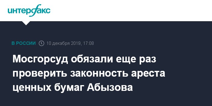 Мосгорсуд обязали еще раз проверить законность ареста ценных бумаг Абызова
