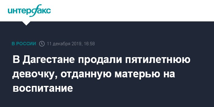 В Дагестане продали пятилетнюю девочку, отданную матерью на воспитание
