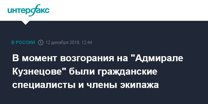 Москва. 12 декабря. INTERFAX.RU - В момент начала пожара на авианесущем крейсере "Адмирал Кузнецов" находились не только гражданские специалисты, которые ремонтируют корабль, но и военные, заявили в пресс-службе центра судоремонта "Звездочка".