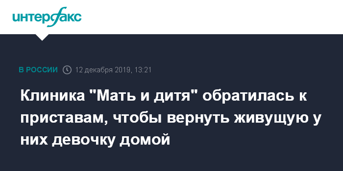 Клиника "Мать и дитя" обратилась к приставам, чтобы вернуть живущую у них девочку домой