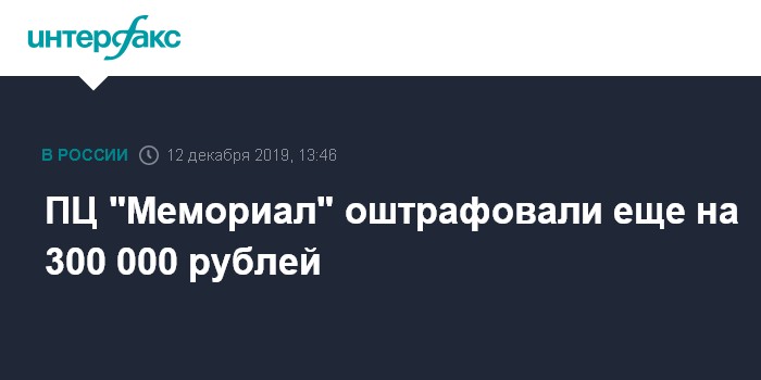 ПЦ "Мемориал" оштрафовали еще на 300 000 рублей