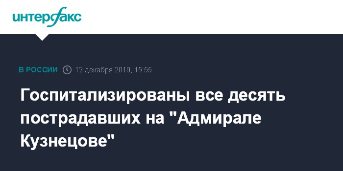 Москва. 12 декабря. INTERFAX.RU - При пожаре на авианосце "Адмирал Кузнецов" пострадали десять человек, их всех положили в больницу, заявили "Интерфаксу" в администрации Мурманской области.