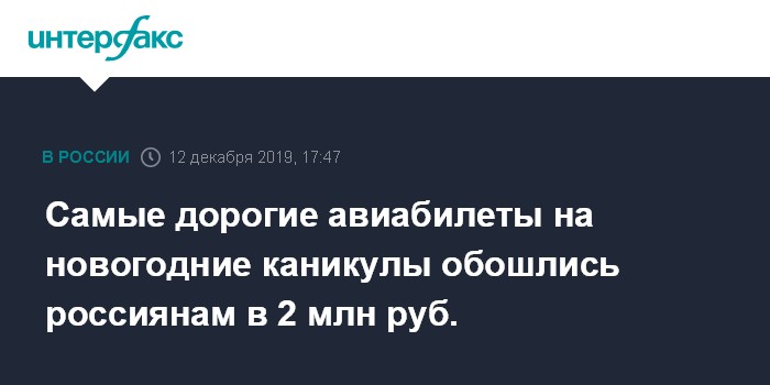 Самые дорогие авиабилеты на новогодние каникулы обошлись россиянам в 2 млн руб.