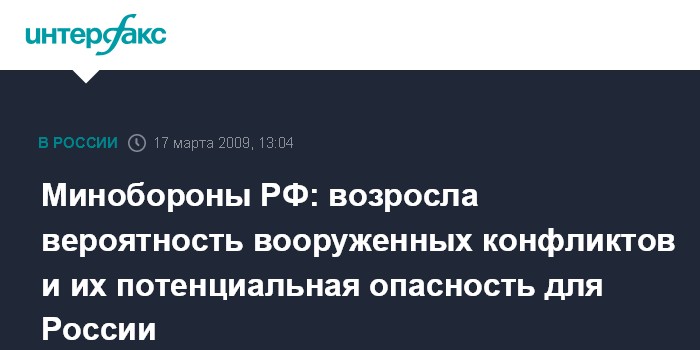 Москва. 17 марта. INTERFAX.RU - Министр обороны РФ Анатолий Сердюков заявил, что анализ военно-политической обстановки "позволяет сделать вывод о возрастании вероятности вооруженных конфликтов и их потенциальной опасности для нашего государства".