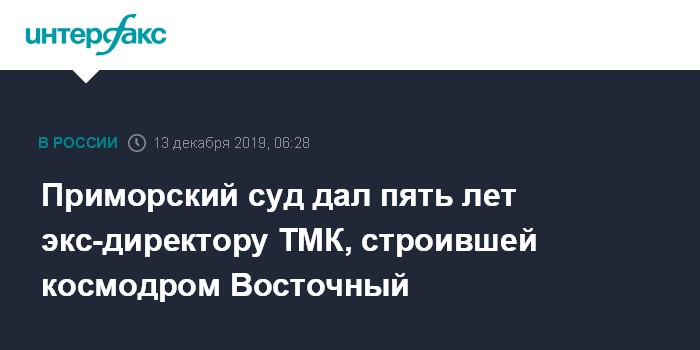 Приморский суд дал пять лет экс-директору ТМК, строившей космодром Восточный