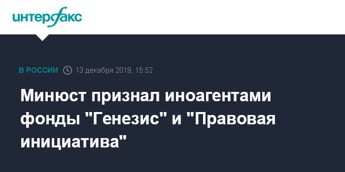 Минюст признал иноагентами фонды "Генезис" и "Правовая инициатива"