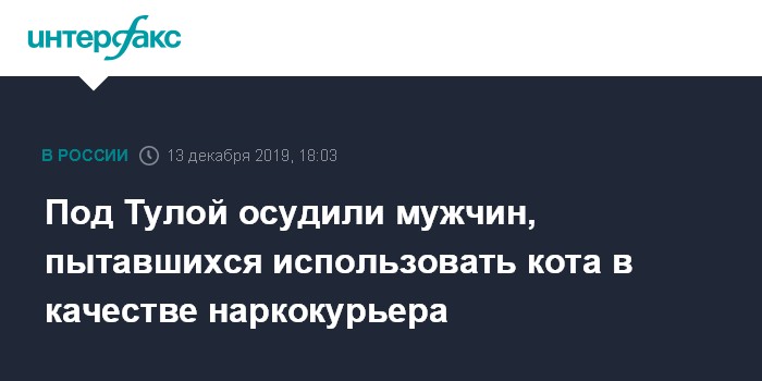 Москва. 13 декабря. INTERFAX.RU - Новомосковский городской суд Тульской области признал трех местных жителей виновными в попытке доставить наркотики в исправительную колонию с помощью кота, сообщила "Интерфаксу" в пятницу пресс-секретарь областного управления Судебного департамента Ольга Дячук.