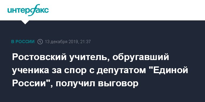 Ростовский учитель, обругавший ученика за спор с депутатом "Единой России", получил выговор