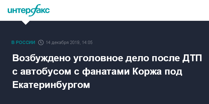 Возбуждено уголовное дело после ДТП с автобусом с фанатами Коржа под Екатеринбургом
