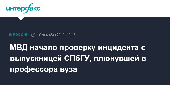 МВД начало проверку инцидента с выпускницей СПбГУ, плюнувшей в профессора вуза