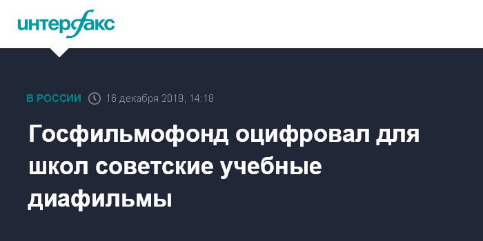 Москва. 16 декабря. INTERFAX.RU - Госфильмофонд обсуждает с Министерством просвещения возможность включить оцифрованные советские диафильмы в школьную и другие образовательные программы, сообщил директор фонда Николай Малаков.