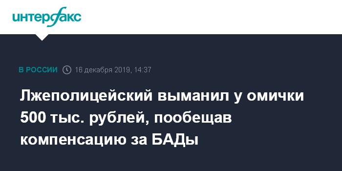 Лжеполицейский выманил у омички 500 тыс. рублей, пообещав компенсацию за БАДы