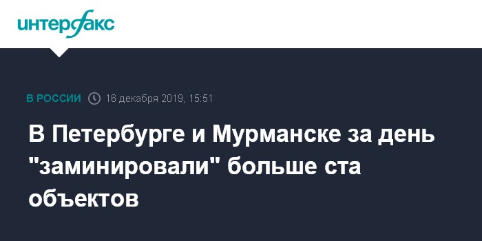 Москва. 16 декабря. INTERFAX.RU - В Петербурге и Мурманске в понедельник проверили десятки зданий из-за сообщений о заложенных там бомбах, сообщил "Интерфаксу" информированный источник.