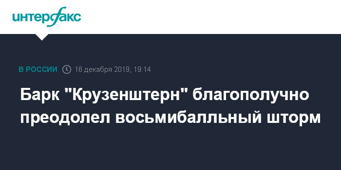 "В настоящее время "Крузенштерн" со скоростью 9 узлов проходит пролив Па-де-Коле, который разделяет Англию и Францию. В этот район интенсивного судоходства барк пришел, успешно преодолев мощный шторм. Накануне экипаж попал в восьмибалльный шторм, где высота волны достигала 5,5 метра, а порывы ветра достигали 40 метров в секунду", - рассказал собеседник агентства.