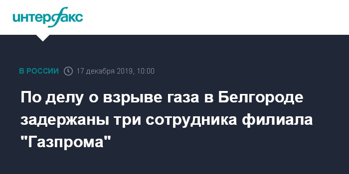 Москва. 17 декабря. INTERFAX.RU - По делу о гибели двух человек при взрыве газа в подвале жилого дома в Белгородской области предъявлены обвинения трем работникам филиала АО "Газпром газораспределение Белгород", сообщила пресс-служба СКР.
