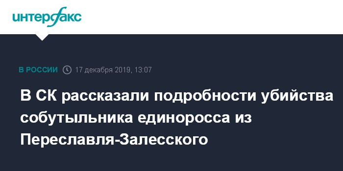 Москва. 17 декабря. INTERFAX.RU - В Следственном комитете подтвердили, что задержали жителя Переславля-Залесского по подозрению в пьяном убийстве знакомого. Там уточнили "Интерфаксу", что задержанный - глава фракции единороссов в городской думе Владимир Корнилов.