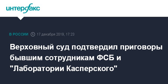 Верховный суд подтвердил приговоры бывшим сотрудникам ФСБ и "Лаборатории Касперского"