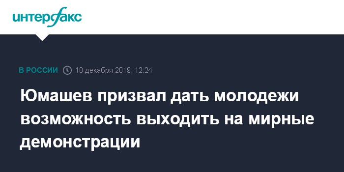 По мнению Юмашева, нужно давать возможность молодым людям выходить на разрешенные мирные демонстрации. "Сегодняшние власти, к сожалению, настолько не привыкли к этому диалогу, что почему-то реагируют так, как мы видим во время московских демонстраций", - сказал он.