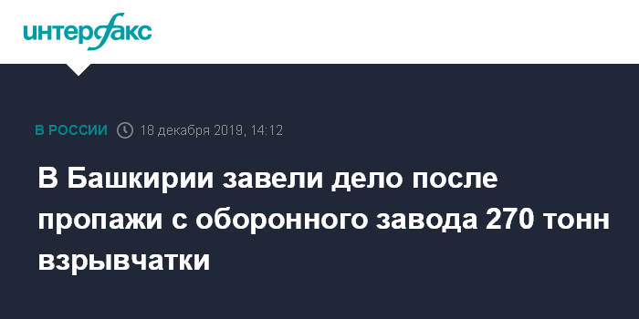 В Башкирии завели дело после пропажи с оборонного завода 270 тонн взрывчатки