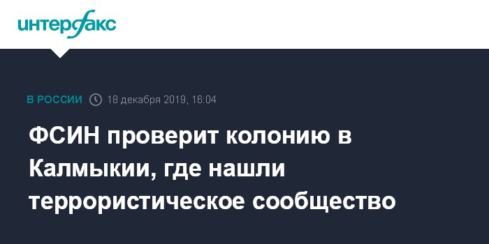 Москва. 18 декабря. INTERFAX.RU - Федеральная служба исполнения наказаний (ФСИН) проверит исправительную колонию в Калмыкии, в которой были выявлены десятки членов террористического сообщества, сообщили в пресс-бюро ведомства.