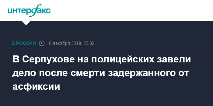 Москва. 18 декабря. INTERFAX.RU - В Серпухове в отношении сотрудников полиции возбудили уголовное дело в связи со смертью мужчины, которого они задержали и повезли в отделение. Эксперт решил, что задержанный погиб от удушения вследствии сдавливания грудной клетки и живота, сообщили в пресс-службе СК Подмосковья.