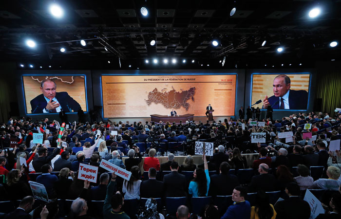 Российский лидер традиционно под конец года отвечает на вопросы журналистов. Большие ежегодные пресс-конференции Путин проводит с 2001 года.