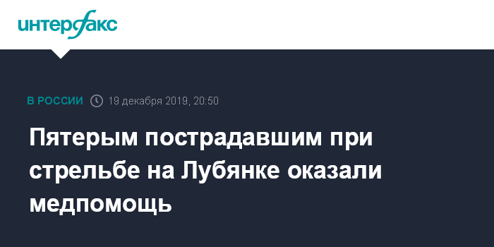 Москва. 19 декабря. INTERFAX.RU - Пятеро пострадавших получают медицинскую помощь после стрельбы в центре Москвы, сообщили "Интерфаксу" в четверг в Минздраве РФ.