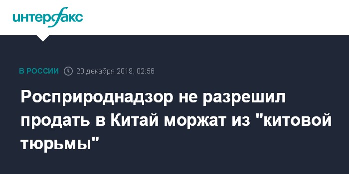 Москва. 20 декабря. INTERFAX.RU - Росприроднадзор принял решение отказать Центру океанографии и морской биологии "Дельфиния" (ООО "Акватория") в выдаче разрешения на вывоз в Китай шести детенышей моржей из "китовой тюрьмы", сообщается на сайте ведомства.