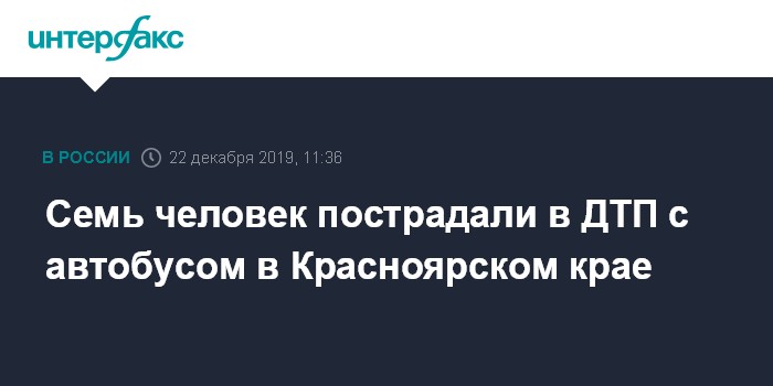 Москва. 22 декабря. INTERFAX.RU - Семь человек пострадали в результате аварии с участием пассажирского автобуса в Красноярском крае, сообщили "Интерфаксу" в воскресенье в пресс-службе краевого МВД России.