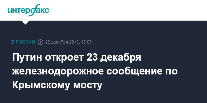 Путин откроет 23 декабря железнодорожное сообщение по Крымскому мосту