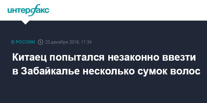 Москва. 23 декабря. INTERFAX.RU - Сотрудники Забайкальского таможенного поста обнаружили в четырех дорожных сумках человеческие волосы, которые пытался ввезти в Россию гражданин Китая.