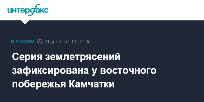Москва. 24 декабря. INTERFAX.RU - Сейсмологи за несколько часов зарегистрировали целую серию землетрясений, продолжающихся у восточного побережья полуострова, сообщили "Интерфаксу" во вторник в Камчатском филиале Единой Геофизической службы РАН.