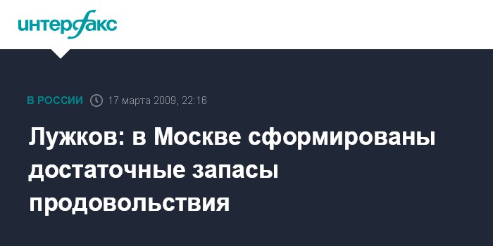 Москва. 17 марта. ИНТЕРФАКС-МОСКВА - Резервы продовольствия в Москве достаточны для обеспечения нужд города, заявил мэр столицы Юрий Лужков.