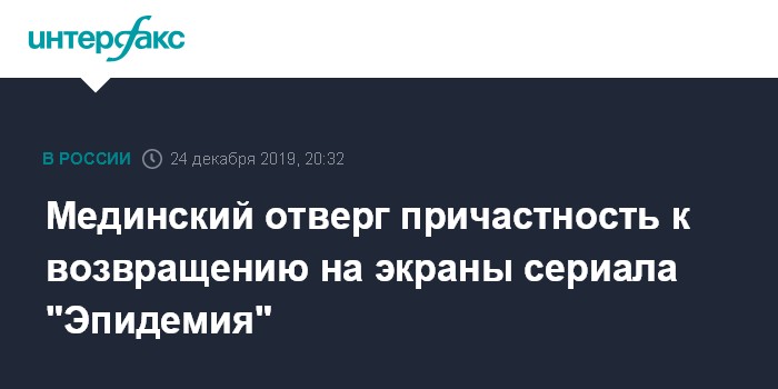 Ранее издание "Медуза" со ссылкой на источники в Минкультуры сообщило, что Мединский принимал непосредственное участие в возвращении "Эпидемии" на платформу премьер.