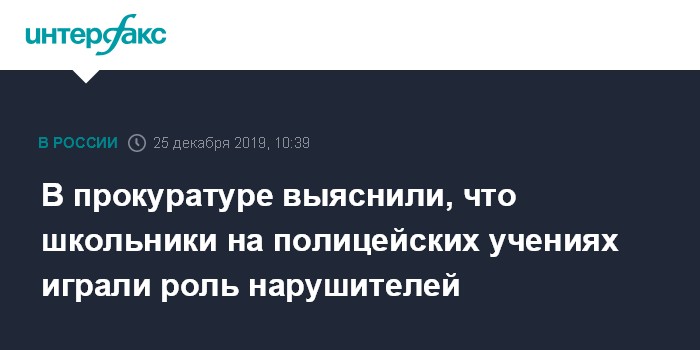 Москва. 25 декабря. INTERFAX.RU - Полицейские задействовали в "тактико-строевых" учениях в школе села Новотроицкое 12 девятиклассников и дали им роли "нарушителей", установила прокурорская проверка. Об этом сообщила пресс-служба прокуратуры Татарстана. В МВД республики ранее заверяли, что ни один подросток не был использован как нарушитель.