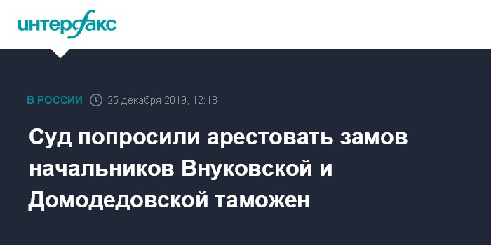 Суд попросили арестовать замов начальников Внуковской и Домодедовской таможен